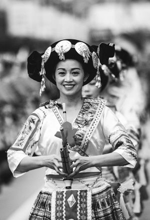 圖為當(dāng)?shù)厝罕妳⒓游幕?jié)開(kāi)幕式民族方隊(duì)巡游。新華社記者 陶亮 攝