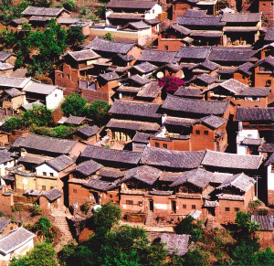 古城的村鎮(zhèn)入口處都有幾棵枝繁葉茂的大榕樹,村內(nèi)尚存仍在使用的古老水井。道路通達(dá)四方,民居互相毗連,沿街巷修建,每院的墻角與對(duì)方的墻角錯(cuò)讓。從蒼山流下的小溪穿村而過,巷巷流水潺潺,家家種樹養(yǎng)花,真可謂“村旁綠樹繞清流,園中桃李結(jié)碩果,院內(nèi)蘭桂飄幽香”。