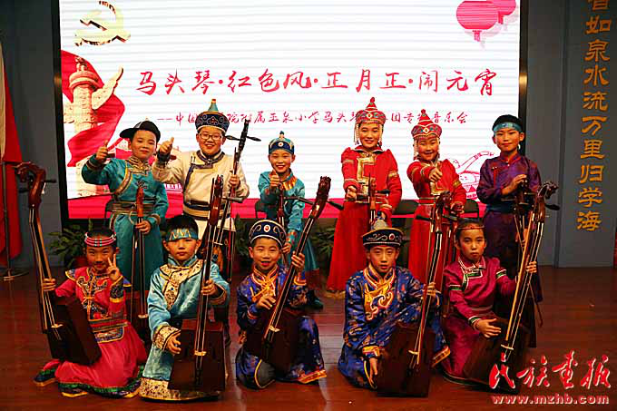 2019年 2月19日,中國科學(xué)院附屬玉泉小學(xué)馬頭琴藝術(shù)團(tuán)在京舉辦“馬頭琴?紅色風(fēng)?正月正?鬧元宵”專場音樂會(huì)