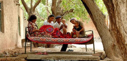 走進火焰山的時候,你就會發(fā)現(xiàn)一種奇怪的現(xiàn)象:家家戶戶的門口或者院落里的葡萄架下,多擺放著一兩張鐵床或木床,甚至有的慶就擺在水渠旁邊。游客會驚奇地部:這是人們睡覺的床嗎?是的,因為吐魯番太熱了,夜里大家都喜歡在房外睡覺,外面夜風涼爽,又沒有蚊子咬,當?shù)孛耧L淳樸,素來有“夜不閉戶、路不拾遺”的好風尚,所以人們都放心 在屋外睡覺,一覺能睡到日上三竿。你看到的這種“鐵床擺在大門外”的情景,在吐魯番的許多鄉(xiāng)村,甚至在吐魯番市區(qū)內,都是人們司空見慣的。