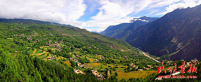 甘孜州東部的丹巴山寨體現(xiàn)了天人合一的理念,遠遠看去,充滿靈氣的山谷中,翡翠般的青草綠樹之中,是那沉甸甸的田地和隱在密林深處的寨房,伴著時有時無的潺潺溪流,一幅富有動感的絕妙山寨畫卷隨之展示在你的眼前(民族畫報資料)
