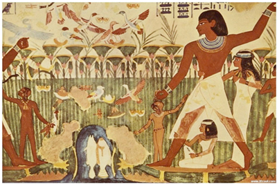 這是一門男人的手藝,父系相傳。在堅硬的牛骨上,起刀、轉(zhuǎn)承、刻下,再施以黑色染料(少許有彩色,但以黑色居多),骨簪通體扁平,紋飾繁復(fù)卻極有空間和秩序感。人形骨簪有單人頭和雙人頭兩種。骨簪分頂部、中部、尾部三個部分。頂部為黎族傳說中峒主(也被稱為“總管三”的部落首領(lǐng))的尖頂高帽,中部為其側(cè)面像。根據(jù)黎族傳說,該首領(lǐng)是民族英雄,象征著祖先的文治武功。有趣的是,這一人像的刻畫,與古埃及壁畫人物造型的“正面律”如出一轍,即人面部的扭曲:眼睛正面,臉卻是側(cè)面。這一特征,一定程度上體現(xiàn)了古埃及人的生死觀,靈魂不滅,人能復(fù)活,而復(fù)活要憑借維持完好的軀體,因此在透視畫法沒有發(fā)明出來之前,人的五官是要盡可能的呈現(xiàn),尤其是最重要的雙眼。