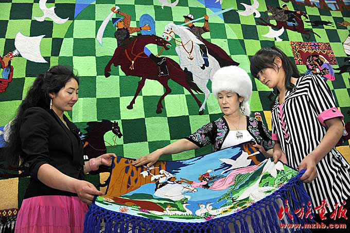 根據(jù)《瑪納斯》的內(nèi)容制作的刺繡作品