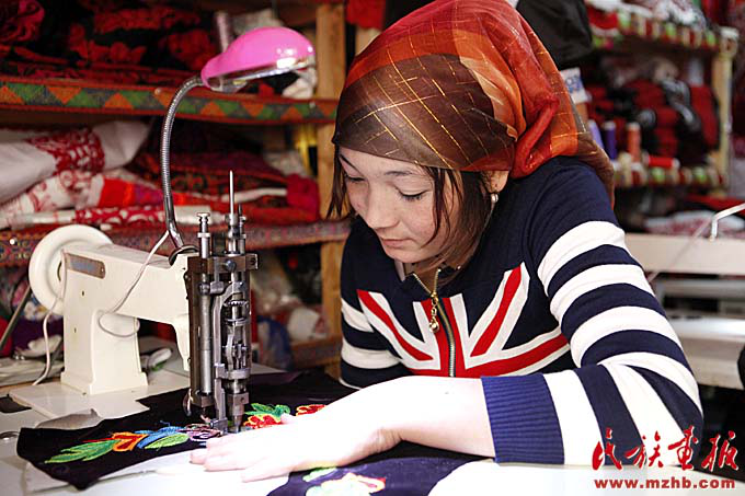 克孜勒陶鄉(xiāng)婦女手工藝刺繡合作社。手工刺繡業(yè)成為克孜勒陶鄉(xiāng)農(nóng)牧民增收的一個(gè)渠道