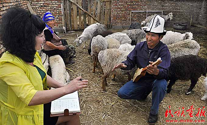 新疆維吾爾自治區(qū)民間文藝家協(xié)會(huì)工作人員在阿圖什市哈拉峻鄉(xiāng)挖掘整理《瑪納斯》