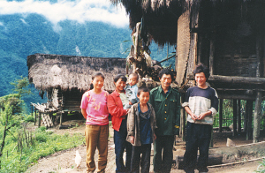 取走竹箭背上弩弓向巴坡返回,一座竹樓里傳出一群孩子的聲音。進(jìn)了屋,大人不在,主人的孩子見(jiàn)到我趕忙攏火燒水,屋里還有鄰家的幾個(gè)孩子。我對(duì)孩子們說(shuō),走哇,到外面射箭去。