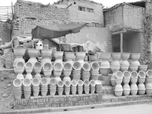新疆喀什隨處可見擺放整齊的土陶。
