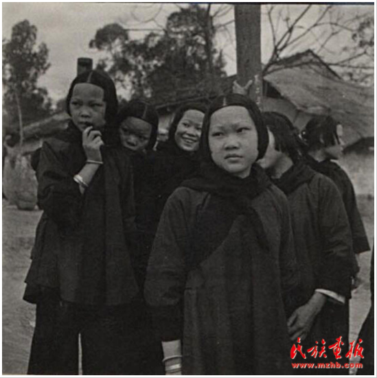 未婚的姑娘在趕圩的人群中非常顯眼,姑娘眉毛都是細細的柳月眉,這是經(jīng)過細線纏拔的