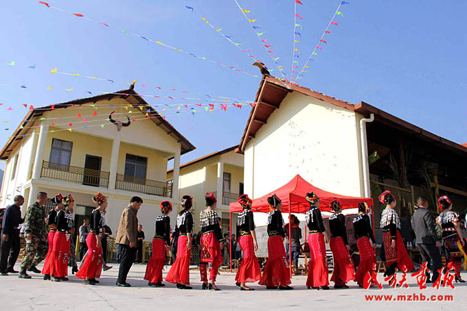在簡單的入住儀式上,到場的梁河縣領(lǐng)導(dǎo)為拱母新村村民發(fā)放了象征著開啟新生活的“鑰匙”。梁河縣信用聯(lián)社還向拱母新村捐贈(zèng)5000元。村民與周邊的各族群眾載歌載舞,表達(dá)著搬入新居的歡樂。