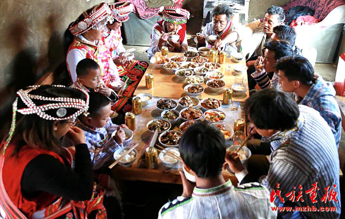 “過去我們一家吃除夕團(tuán)圓飯,有點(diǎn)肉就不錯了,哪會有如此豐盛的宴席。你看如今這滿桌子十幾道菜,吃不完、喝不完,全靠黨和國家的政策好啊?!痹谡劦酱汗?jié)的變化時,云南省維西傈僳族自治縣保和鎮(zhèn)臘八底村的蜂大興深有體會。