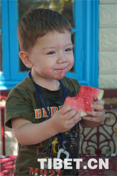 走在喀贊其街頭,可以看到穿著鮮艷花色連衣裙的維吾爾族婦女、扎著漂亮方形頭巾的哈薩克族姑娘、戴著白色圓帽的回族老漢……如同觀看一場(chǎng)民族服裝表演。圖為喀贊其老街上的“悠閑時(shí)光”。