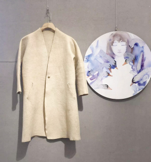 哈薩克族羊絨氈衣 秦娜兒·努爾蘭(參展人): 哈薩克人從搖籃到墳?zāi)苟茧x不開氈子。我是在奶奶做的花氈上邁出人生第一步的。奶奶去世的時(shí)候,為了紀(jì)念她,我做了這件衣服。這是一件可以穿一輩子的、能承載得起一段記憶的衣服。如果奶奶在世,看到這件衣服也會(huì)贊嘆吧!