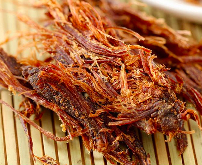 火燒干巴的吃法不復(fù)雜,不加任何輔料,不加任何味道,撕開肉絲即可食用。如果覺得干,可以涼拌一盤黃瓜輔之,風(fēng)味更甚。剛燒出來的干巴,香且脆,味勻,擱置太久,會回軟,失去其原有的香脆可口的口感。