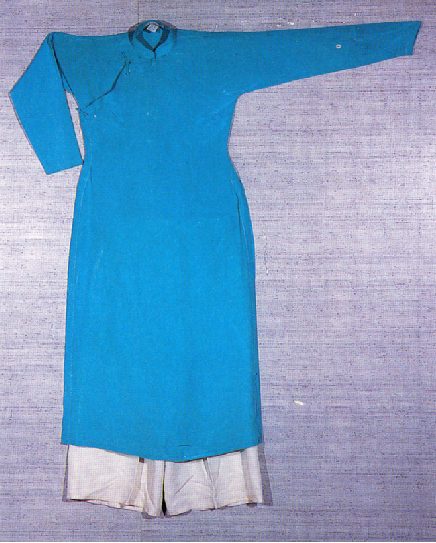 在古籍資料《防城縣志》中這樣記載:“安南人的服裝,男衫長(zhǎng)過(guò)膝,窄袖袒胸,腰間束帶;女衫長(zhǎng)不遮臀,褲闊……”從此項(xiàng)描述中可以大致知道京族早年傳統(tǒng)服飾的概況。