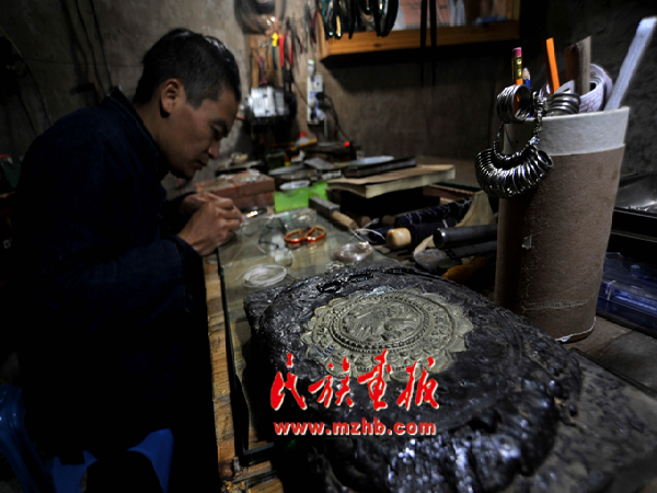 走進(jìn)龍?zhí)柕拿缱邈y飾傳承工作室,一件件銀飾讓人目不暇接,嘆為觀止。看似普普通通的銀片、銀條,在他的手里富有生命力的藝術(shù)作品,每個制作細(xì)節(jié)和過程都透著一股精致。