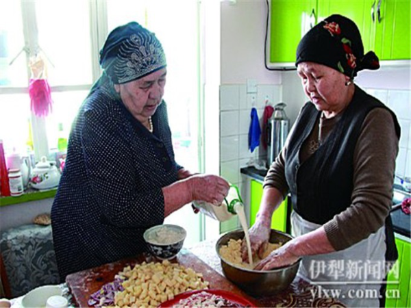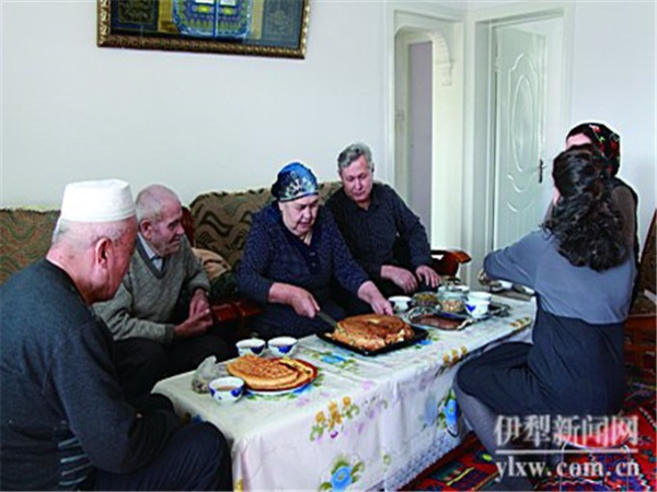 她回憶,小時(shí)候,他們家住在伊寧市六星街。家里有個(gè)大大的院子,院子里有棵茁壯的杏樹(shù),杏樹(shù)下是一方土打的正方形的拱形烤爐。那時(shí)候,塔塔爾族人家的院子里,都會(huì)有這樣一方大烤爐。她的母親就常在大杏樹(shù)下忙碌,烤餅干、列巴、拜列西。一烤起來(lái),滿(mǎn)院子都是烘烤的食物的馨香。“母親手巧得很,什么都會(huì)做?!辟I(mǎi)斯胡旦說(shuō),臉上現(xiàn)出回想母親健在時(shí)所帶來(lái)的溫馨神情。