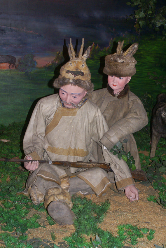 狩獵經(jīng)濟(jì)在鄂倫春族社會(huì)中維持了幾千年,一人一匹獵馬一桿槍,再加上幾條獵狗和一片獵場(chǎng),幾乎就是鄂倫春族的全部生產(chǎn)力。而槍支的傳入也不過(guò)才300多年的歷史,在此之前使用石塊和木棒狩獵,后來(lái)發(fā)明了扎槍和弓箭,與外界幾乎隔絕,純粹的食獸肉、衣獸皮。鄂倫春族最早使用的獵槍是被稱做“俄羅斯鳥(niǎo)槍”的火槍,這是清朝的察邊官吏、外民族及俄國(guó)商人交換給他們的。有火繩槍、火鐮槍和泡子槍三種,都是從槍筒裝入火藥或鉛彈,只是引爆方式不同。民國(guó)以后陸續(xù)傳入俄國(guó)造的連珠式和“三八”式、“七九”式等現(xiàn)代步槍。槍支的傳入,使鄂倫春人有了剩余產(chǎn)品,于是出現(xiàn)了交換經(jīng)濟(jì)。每年五月的“楚勒罕”集會(huì)時(shí),鄂倫春、鄂溫克、達(dá)斡爾等狩獵民族要向清廷貢貂,經(jīng)朝廷官員檢驗(yàn),不合格者可以在集會(huì)上進(jìn)行互市。此時(shí),他們也帶一些其他的獵產(chǎn)品及手工藝品進(jìn)行交換。由于鄂倫春人所貢貂皮質(zhì)量最好,故朝廷對(duì)他們采取了特別的納貂辦法:每年派一名專職人員到鄂倫春地區(qū)代表官府征收貂皮、發(fā)放賞賜。這些專職人員被稱為“諳達(dá)”,他們代表官府征收貂皮的同時(shí),也自帶一些糧食、布匹和其他生產(chǎn)、生活用品與鄂倫春人進(jìn)行私下交換。后來(lái),“諳達(dá)”變成了泛指進(jìn)山進(jìn)行獵產(chǎn)品收購(gòu)生意的所有商人?!爸O達(dá)”與鄂倫春人進(jìn)行交換時(shí)從不計(jì)價(jià),而是以“馬馱”為計(jì)量單位,雙方以同樣一馬馱的物品進(jìn)行互換,或者采取包干制的辦法,一個(gè)“諳達(dá)”固定幾個(gè)包攬戶,按期供給他們生產(chǎn)和生活必需品,包攬戶將所有的剩余產(chǎn)品交于“諳達(dá)”。隨著貨幣經(jīng)濟(jì)的發(fā)展,清末時(shí)期,鄂倫春族周邊地區(qū)出現(xiàn)了眾多商號(hào)商鋪,這些商號(hào)(鋪)的老板被稱為“老客”,他們同鄂倫春人進(jìn)行計(jì)價(jià)交換。同時(shí)還出現(xiàn)了一些進(jìn)行計(jì)價(jià)交換的行商,被稱為“跑老客”。鄂倫春人雖然受到“諳達(dá)”、老客和跑老客的瘋狂欺詐和層層盤(pán)剝,但在與他們的交換中,卻自覺(jué)或不自覺(jué)地打開(kāi)了封閉的自然經(jīng)濟(jì)大門,朝著商品經(jīng)濟(jì)邁進(jìn)了一步(鄂倫春博物館展覽攝影:劉軍)。