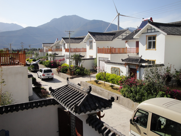 ?、扇恳徽毡诹餍杏谠颇洗罄砦∩降鹊匾蛥^(qū)。主房順山勢依山而建,兩側(cè)耳房較低,再加一照壁,為土木結(jié)構(gòu)的組合建筑。多數(shù)為草房,少數(shù)為瓦房,有帶廈和不帶廈兩種。房形有實(shí)心房、空心房;吊廈、鸚哥房用木板搭成踩樓。主房高于耳房,主次分明,布局協(xié)調(diào)。前面垂檐,形成前出廊的格局,以一排柱子為主的屋架承重,四柱落地,左右后三方用土基墻圍護(hù),前面及中央用木板為隔。主房山墻到頂,屋面挑出。