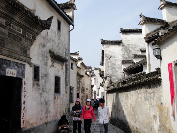 由于土地珍貴,屋宅內(nèi)外的空間都得到最大利用,因為絕大部分民居出門見水,所以幾乎每家門外都有一個小小的埠頭。主婦每日洗衣、洗菜、淘米等都在這里,來往小船也可在這里停泊。和水路相比,街巷顯得十分狹小,有的僅容一人牽牛而行。高高的垣墻夾著曲折的街巷,營造出曲徑通幽的別樣意境。