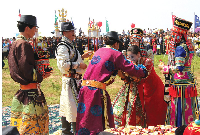 鄂爾多斯地區(qū)至今仍然比較完整地保留著鄂爾多斯婚禮的儀式程序,并使其發(fā)展演變成為一種禮儀化、規(guī)范化、風(fēng)俗化和歌舞化的民俗文化現(xiàn)象。自始至終洋溢著迷人的蒙古民族風(fēng)情。