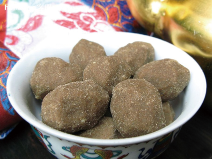 甘肅甘南藏區(qū)的灌湯包子、蕨麻米飯是有名的特色食品。做蕨麻米飯時(shí),先將大米和蕨麻洗凈加適量的水在鍋里煮,待煮熟后加酥油白糖食用,蕨麻是一種野生食材,也叫人參果,味甜且富有營養(yǎng)。灌湯包子是牛肉或羊肉加板油和蔥剁碎,再加各種佐料和成餡兒,餡兒要很稀,然后包成包子,蒸熟的包子里面有湯,所有叫灌湯包子。藏族的特色食品很多,土豆咖喱飯、灌血腸、灌肉腸、灌羊肺等。