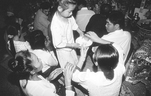 參加活動的村民擠滿了佛寺的里里外外