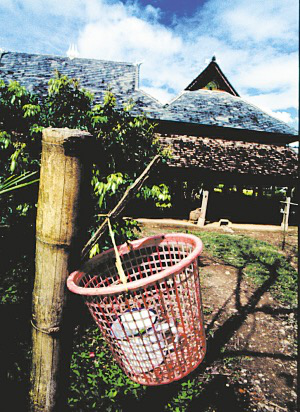 村長(zhǎng)巖化告訴我,村里巖約的老母親死了。門(mén)口掛的東西叫“喃送派”,是用來(lái)驅(qū)趕沾在身上的鬼氣的。