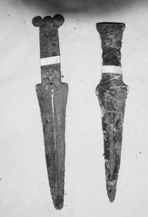 2006年,涼山州文化局請文物專家鑒定了公安機關收繳的鹽源文物,鑒定現(xiàn)場有3把雙環(huán)首青銅短劍。其中一把青銅短劍長27厘米,一把長27.5厘米,還有一把26厘米,均為戰(zhàn)國至漢代時期文物。