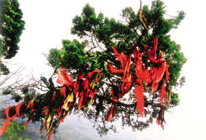 花瑤同胞祖祖輩輩與寨子里的古樹久久相依。在他們心中,有著頑強生命力的老樹飽吸天地之靈氣,百年不腐,千年不朽,早已是神,時時都在庇佑他們。故對之倍加敬仰,又十分親近,誰都不會貿(mào)然去傷害它們。即便是蟲蛀樹空枯朽倒地,也不敢拖回家用,而是讓其自生自滅,還原于土。