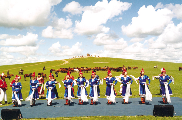 內蒙古烏蘭牧騎的演員,吹拉彈唱跳,幾乎個個是多面手。從以前騎馬下鄉(xiāng)到現(xiàn)在坐車下鄉(xiāng),方式雖然有變,但為農牧民演出的熱情沒有變。鄂溫克自治旗烏蘭牧騎在當?shù)貫檗r牧民演出都是公益性的,一年最少也有100多場。但自然地,由上級指派、旅游接待、大型晚會、出訪演出,則收一些相應費用。全年下來300多場。他們的演出節(jié)目,一般都有舞蹈、獨唱、重唱、馬頭琴合奏、民歌聯(lián)唱等,包括《敖包相會》、《萬馬奔騰》等馬頭琴名曲,也有他們自己創(chuàng)作的《山林回想》、《鄂溫克大地》等獲獎歌舞劇目。