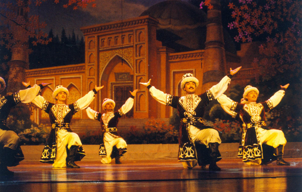 哈薩克族中無論男女老少都是能歌善舞的人,其舞蹈大多數(shù)都是反映哈薩克族人民的生活,具有濃烈的草原生活氣息。哈薩克族的舞蹈動(dòng)作剛健有力、優(yōu)美動(dòng)人、舒展豪放,與此同時(shí),它也不乏中亞舞蹈風(fēng)格,不僅有山的胸懷、水的溫柔,還有雄鷹的兇猛矯健、駿馬的忠誠勤勞、天鵝的優(yōu)雅神韻,當(dāng)然也有突厥人的騎馬步法和蒙古人的搖身抖肩動(dòng)作,其舞蹈內(nèi)容以反映牧業(yè)生產(chǎn)的居多。哈薩克族的傳統(tǒng)舞蹈主要有《擠奶舞》《剪毛舞》等,還有表現(xiàn)騎馬的《走馬舞》,表現(xiàn)狩獵的《熊舞》等。隨著我國文化藝術(shù)的日益發(fā)展和繁榮,哈薩克族新舞蹈的表現(xiàn)形式也更加豐富多彩。