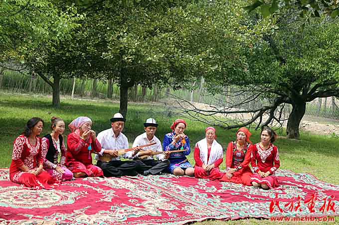 據(jù)色帕巴依鄉(xiāng)黨委委員阿依木古麗·艾山卡德介紹,該鄉(xiāng)在鄉(xiāng)中心小學(xué)專門開設(shè)課程教學(xué)生學(xué)彈庫姆孜琴,并積極舉辦“我為庫姆孜代言”活動,積極培養(yǎng)庫姆孜傳承人。此外,鄉(xiāng)里還專門組建有庫姆孜彈唱隊(duì)?!拔覀兝冒偃瘴幕瘡V場和日常的演出走村串巷,積極參加縣宣傳部開展的各項(xiàng)文體活動。今年2月開展的群眾大會,把庫姆孜音樂重新填詞,配合惠民政策宣傳,將傳播民族文化與群眾思想政治工作相結(jié)合?!蓖瑯?,在烏恰縣吾合沙魯鄉(xiāng)恰提村,當(dāng)?shù)伛v村工作隊(duì)積極組織20名返鄉(xiāng)學(xué)生開辦“庫姆孜彈唱文藝培訓(xùn)班”,廣泛調(diào)動返鄉(xiāng)大學(xué)生加入到文化傳承的行列中。