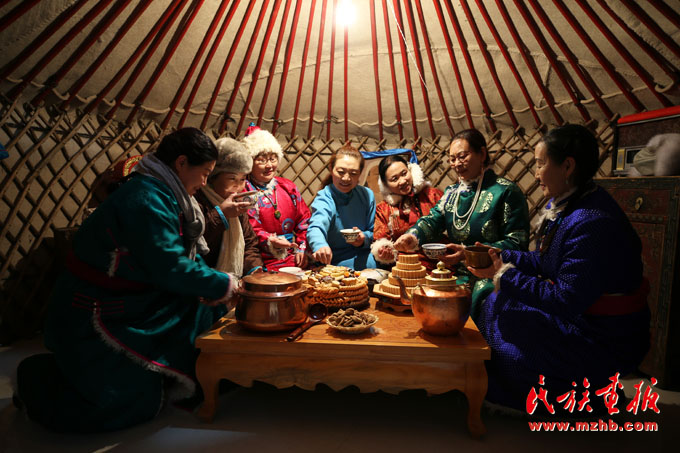 身著傳統(tǒng)察哈爾服飾的兒童們