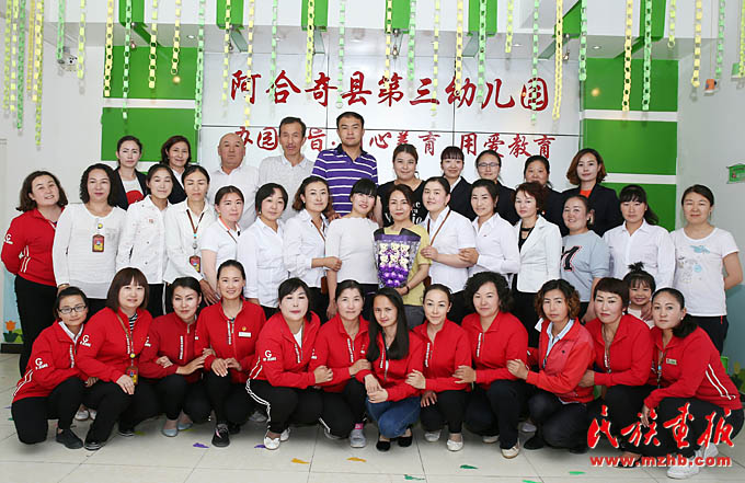 作為園長,她在鼓勵支持教師成長的同時,還非常注重自身素質(zhì)的全面提高。從理論水平到實踐能力,從專業(yè)素養(yǎng)到業(yè)務(wù)技能,從廣博的知識面到良好的學(xué)習(xí)習(xí)慣和方法,古麗孜娜提不斷充實和更新,以保持先進(jìn)和超前的意識。去年,在阿合奇縣教育局的安排之下,古麗孜娜提赴無錫學(xué)習(xí)帶隊,與全縣13名教師去往美麗江南、援疆對口城市江蘇省無錫市進(jìn)行為期一個月的學(xué)習(xí)。她說:“通過這次的學(xué)習(xí),我進(jìn)一步了解和掌握了幼兒園辦學(xué)的先進(jìn)理念和管理模式,也確立了今后的工作目標(biāo)和方向。”她常說,必須堅持把學(xué)習(xí)放在第一位,只有扎實、認(rèn)真地學(xué)習(xí),才能擴展知識領(lǐng)域,更新知識結(jié)構(gòu),提高分析、解決問題的能力,才能提高自己的素養(yǎng)和園所的整體素質(zhì)?!?/p>