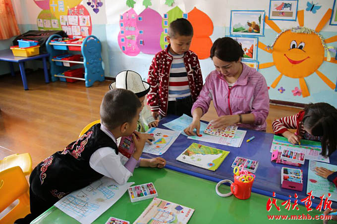 古麗孜娜提說,在她兒時記憶中,縣里的幼兒園、小學(xué)和中學(xué),只有幾排墻皮斑駁的平房和破桌椅。因條件太差,父母都想方設(shè)法將子女送到數(shù)百里外的城市讀書?,F(xiàn)在,幼兒園里,語音室、科學(xué)活動室、舞蹈室等一應(yīng)俱全,雙語教師、保育員等人員也按相應(yīng)比例配備到位??h交通部門還安排兩輛專線車每天免費接送第三幼兒園師生。能在條件這么好的幼兒園工作,她感到由衷的欣慰,同時也感到了壓力。