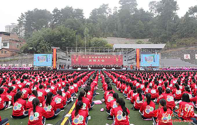 11月16日 環(huán)江毛南族自治縣高級中學迎來了80周年華誕。學校舉辦了鳳凰校區(qū)落成剪彩儀式、80周年慶祝大會和文藝演出、校友勵志講座等紀念活動。環(huán)江毛南族自治縣高級中學是自治區(qū)文明單位,自治區(qū)”和諧學?!保B續(xù)多年榮獲”全區(qū)中小學德育工作先進集體””河池市普通高中教育教學質量優(yōu)秀學校甲級一等獎” “河池市普通高中教學質量優(yōu)秀學校特別貢獻獎”等榮譽稱號。該校創(chuàng)建于1937年11月,占地近200畝,現(xiàn)有57個教學班,在校生3800多人。由共美教育中學聯(lián)盟和中央民族大學附屬中學主辦的“2017年中國少數(shù)民族地區(qū)普通高中教育改革與發(fā)展研討會”在環(huán)江高中召開,中央民族大學附屬中學黨委書記佟麗娟對記者說:“此次組織全國的幾十名少數(shù)民族地區(qū)高中校長來到環(huán)江進行交流學習,感覺環(huán)江校風淳樸、民風純樸,綠水青山含笑,各族人民幸福。”