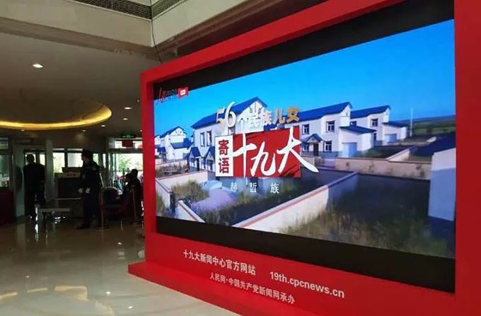 大型系列微視頻“56個(gè)民族兒女寄語(yǔ)十九大”視頻十九大期間在梅地亞新聞中心大屏展示并滾動(dòng)播出(人民網(wǎng))
