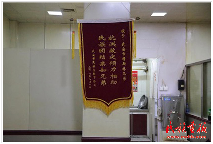 楊勇智在冒著熱氣的羊湯店中向記者回憶起了2016年7月19日那天武安爆發(fā)洪災的事情。當天他第一時間組織了周圍的群眾和穆斯林朋友們進行抗洪救援的事情還歷歷在目。他說,民族之間的團結在任何地方都是一股力量。為此,武安市民族宗教事務局對楊勇智的行為給予了極大的肯定,并將“抗洪救災傾力相助,民族團結親如兄弟”的錦旗贈予楊勇智和他的穆斯林朋友們。