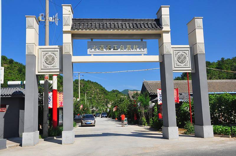 走在七道梁村的街頭,到處洋溢著滿(mǎn)韻清風(fēng)。村口矗立的牌坊上“七道梁正白旗村”七個(gè)大字顯得格外醒目,兩旁的文化墻上印著八旗圖案和滿(mǎn)族習(xí)俗宣傳畫(huà)……