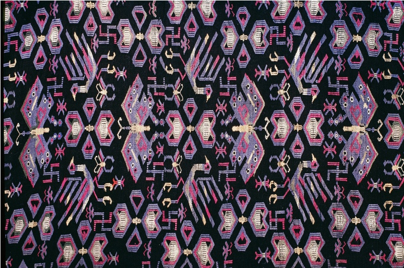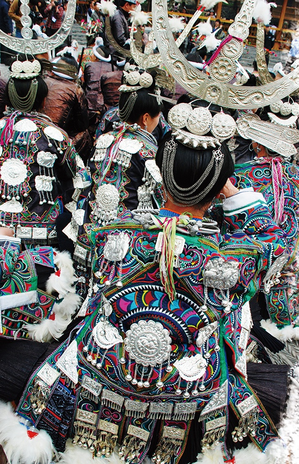 亳無(wú)疑問(wèn),蝴蝶圖騰即是對(duì)蠶的崇拜,蠶文化原初的核心便是人歸途的儀式,人要在這種和蠶一祥的儀式中得到再生。今天的苗族,仍然保持著以絲綢裹身而葬的喪葬習(xí)俗。我祖母養(yǎng)蠶織就的絲織品,我們習(xí)慣稱作蠶絲床單,絕大部分是備著喪葬所用。凡有人去世,主客必送一床蠶絲單,沒(méi)有是不行的,被視為不懂禮節(jié),而死者獲得蠶絲單越多越好。有的人家收到的蠶絲單過(guò)多,就會(huì)保存一部分,留著將來(lái)的喪事送禮。苗族每個(gè)人都必備一件絲質(zhì)壽衣。并且,在許多重大的儀式活動(dòng)中必須要著絲綢服裝。比如在苗族重大的鼓藏節(jié)期間,鼓社頭必須穿絲織鼓社服;大祭典活動(dòng)時(shí),祭師也必須穿絲質(zhì)服裝等等。
