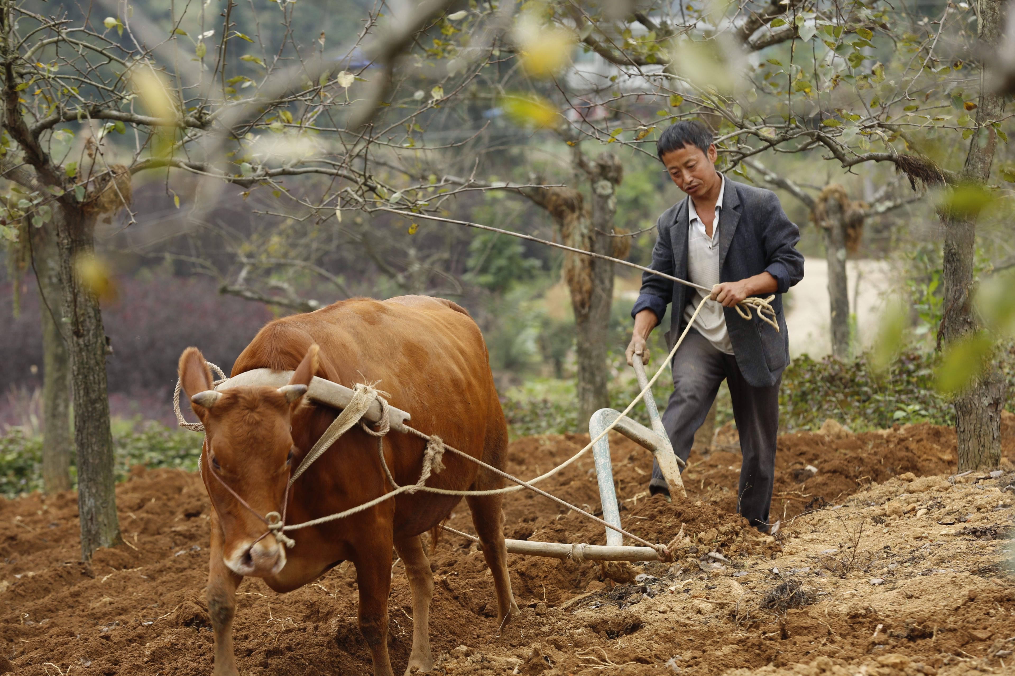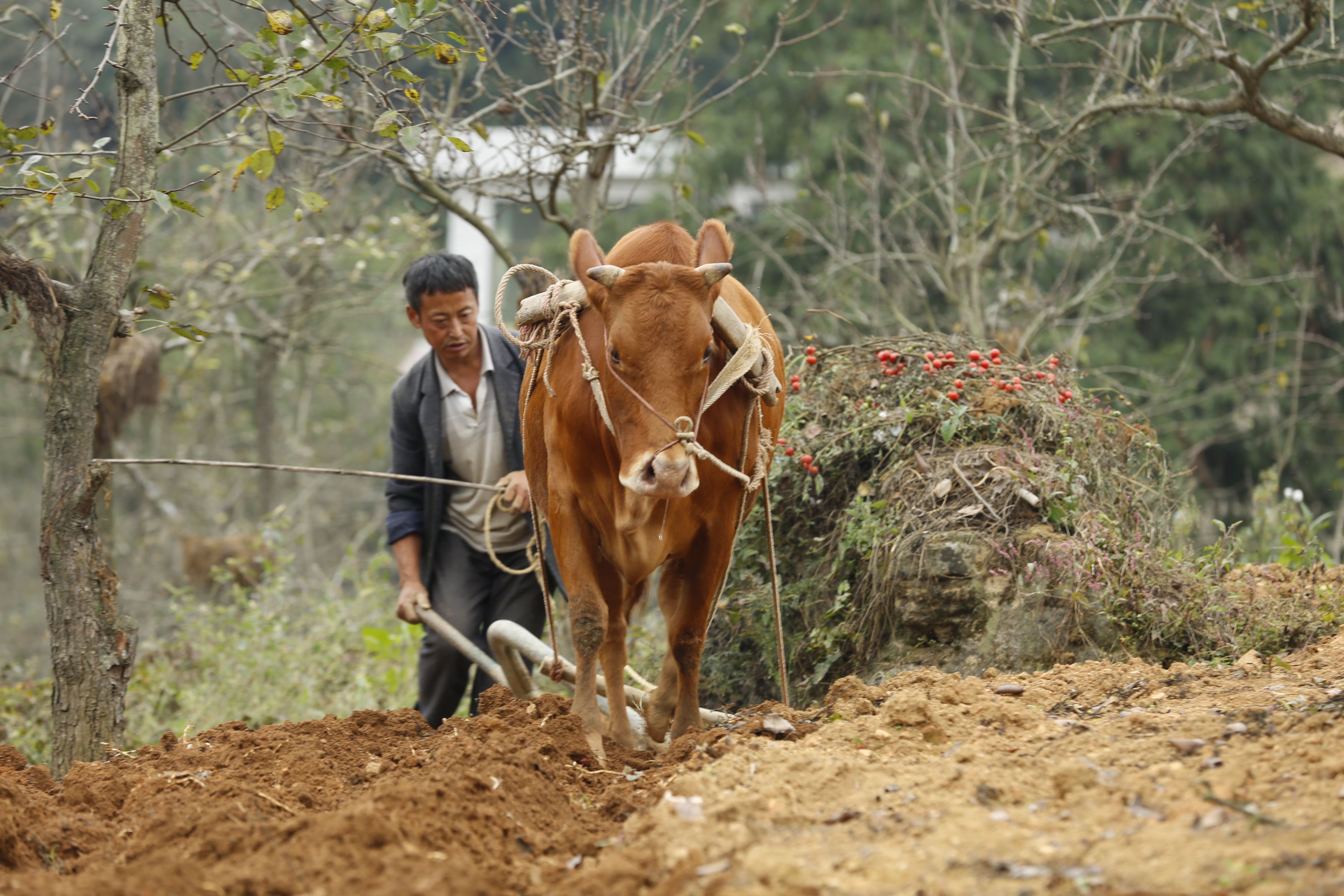 圖片名稱:貴州貴陽(yáng)苗族農(nóng)作物種植-牛耕田