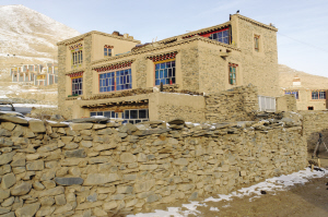 受地理氣候、歷史因素等影響,青海各傳統(tǒng)村落的人口密度、村域面積和村民從事的主業(yè)等各不相同。同一地區(qū)各村落之間雖然地貌特征大致相同,但因局部的植被條件存在差異,所以民居建筑的內(nèi)部結(jié)構(gòu)及木材用量上稍有差異。東部農(nóng)業(yè)區(qū)人口密度相對較大,一個(gè)自然村分建為兩到三個(gè)行政村。這些村落通常有著共同的祖先、共同的風(fēng)俗習(xí)慣以及共同祭祀的山神和共同供奉的寺廟。而青南地區(qū)的一個(gè)行政村下轄5至7個(gè)自然村,轄區(qū)面積約300至500平方公里,有兩三座寺院。山水地貌、拉則(神山祭祀臺)、經(jīng)幡、寺院、佛塔、石經(jīng)墻及錯(cuò)落有致的碉樓民居建筑,構(gòu)成了一個(gè)有機(jī)的整體,是青藏高原傳統(tǒng)村落不可或缺的組成部分。