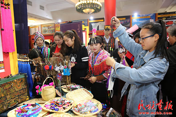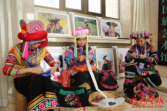 楚雄州彝族彝繡繡娘們現(xiàn)場展示彝繡技藝