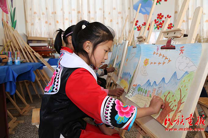 看過臘灣民族小學課間操的人都會說:“臘灣民族小學的課間操都是跳出來的。”然而,對于這所雙語教學的民族小學來說,其民族特色遠不止于此。穿彝族傳統(tǒng)服裝、講彝語也是這里的教育特色。