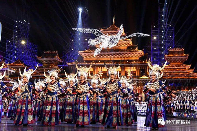 2018年中央電視臺春節(jié)聯(lián)歡晚會上黔東南分會場的歌舞表演(黔東南微報)