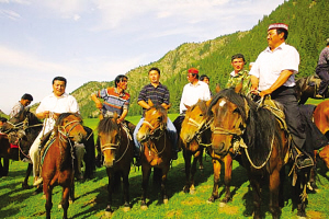 座談會結束后,大家又來到新地溝草原,舉行哈薩克族民間傳統(tǒng)體育活動,哈薩克族群眾紛紛參加姑娘追、摔跤、叼羊、賽馬等活動。一時間人聲鼎沸,歡歌笑語,草原上呈現(xiàn)出一片歡悅的景象。