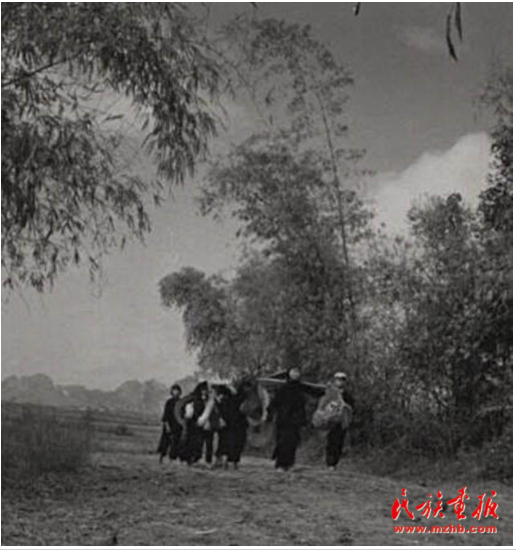 壯族青年男女們帶著口糧成群結(jié)隊地前來參加歌圩