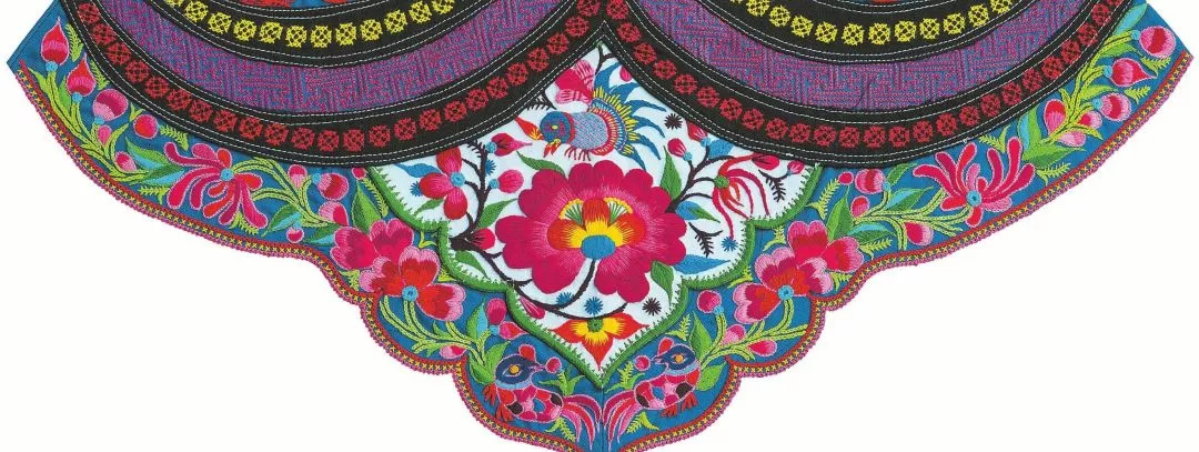 彝族婦女圍腰,是女性審美的結(jié)晶,實(shí)用美觀。圍腰是最能集中體現(xiàn)彝族女性心靈手巧的女紅作品,因此成為青年男子傳統(tǒng)擇偶的重要標(biāo)準(zhǔn)之一。每條彝族圍腰,須經(jīng)過剪紙、裁剪、刺繡、挑花、配飾等環(huán)節(jié),每一個細(xì)微的過程都傾注了彝女的聰明與才智。事實(shí)上,彝族婦女圍腰,還蘊(yùn)含著重要的彝族社會歷史、文化信息。