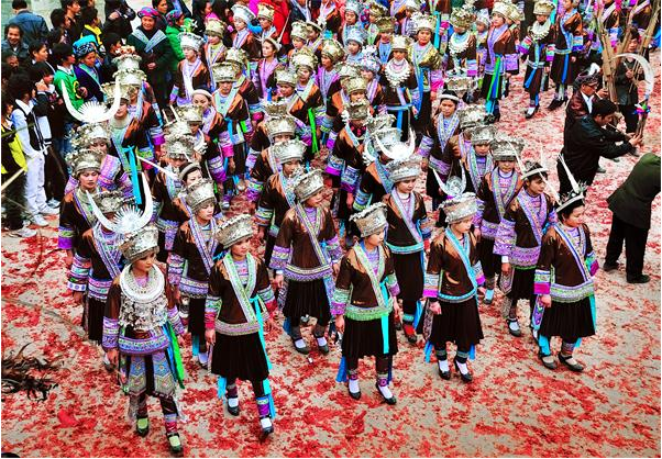 除此之外,春節(jié)期間亦是各民族群眾婚嫁迎娶、走親訪友的高峰期,苗族的送親、送年飯、走妹坐夜、蘆笙打同年等異彩繽紛的傳統(tǒng)禮俗將帶給你不一樣的體驗。