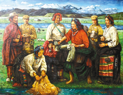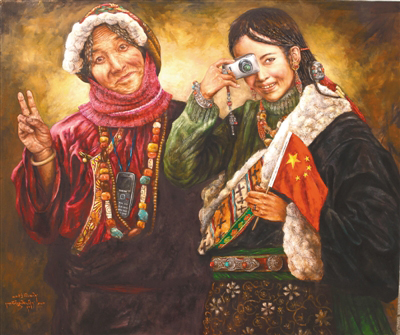 “以前畫(huà)畫(huà)時(shí),對(duì)自己的最高要求就是畫(huà)得要逼真,把油畫(huà)畫(huà)得像一幅放大了的照片,而現(xiàn)在關(guān)注的是如何畫(huà)出能體現(xiàn)當(dāng)代的畫(huà)面。西藏的美是無(wú)窮無(wú)盡的,我就想用繪畫(huà)的方式窮盡一生去追求,展現(xiàn)大美西藏?!比缃竦乃髀?,淡去了初出茅廬時(shí)一味追求畫(huà)面質(zhì)感的匠氣,多了些許內(nèi)心對(duì)西藏這片熱土深層次的思考。他筆下的西藏是一片充滿生機(jī)的土地,濃墨重彩之間,既有對(duì)傳統(tǒng)和過(guò)往年華的回望和懷念,又在仿若不經(jīng)意間透過(guò)一個(gè)眼神、一抹色彩、一個(gè)小物件盡情詮釋活力和希望。